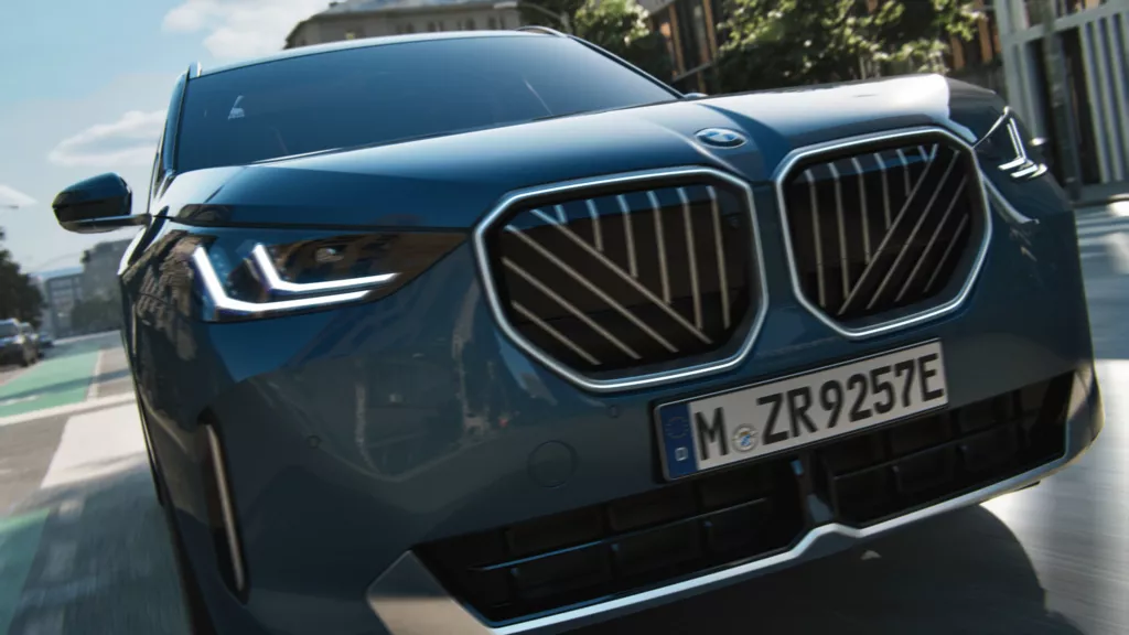 Im Exterieur beweist der BMW X3 Plug-in-Hybrid Größe und Präsenz. Großzügige Flächen und präzise Konturen formen seine monolithischen SUV-Proportionen – von der imposanten Frontpartie über die lange Seitenansicht mit großzügigem Radstand bis hin zum breiten Heck. Highlights setzt dabei das komplett neu interpretierte Design der BMW Niere mit Konturbeleuchtung sowie die neue Doppel-Lichtsignatur der Frontscheinwerfer.