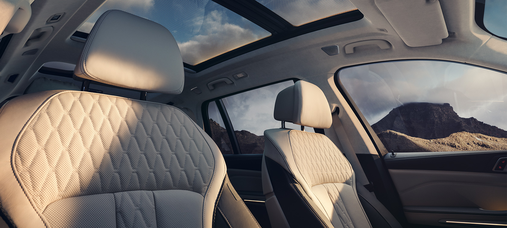 À l’intérieur de la BMW X7, la technologie de pointe se mêle à une élégance épurée. Des détails minutieusement conçus, comme le poste de conduite haut de gamme et intuitif ainsi que les matériaux nobles, créent une ambiance harmonieuse et réfléchie. Le vaste toit panoramique en verre ouvre le regard vers le ciel, apportant une impression d’espace et de luminosité incomparable.